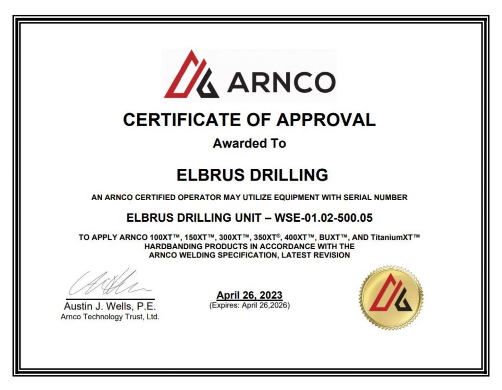 Наша установка для наплавки соответствует всем современным стандартам качества, имеет необходимые сертификаты. Elbrus Drilling обладает лицензией на проведение данного вида услуг и может проводить наплавку на площадке компании в Тюмени, на месторождениях и на базе заказчика.