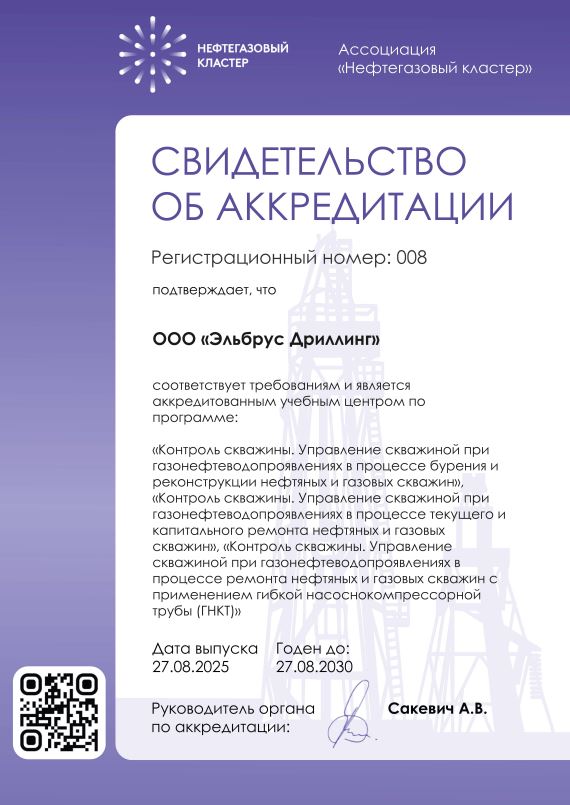 Полное наименование Учебного центра на русском языке: Специализированное структурное образовательное подразделение «Учебный центр» Общества с ограниченной ответственностью «Эльбрус Дриллинг».
