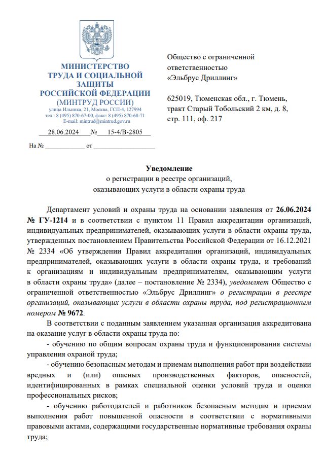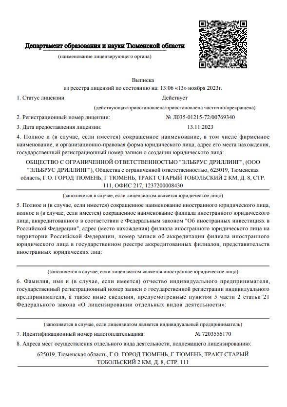 Специализированное структурное образовательное подразделение «Учебный центр» общества с ограниченной ответственностью «Эльбрус Дриллинг», создано 01.08.2023.
